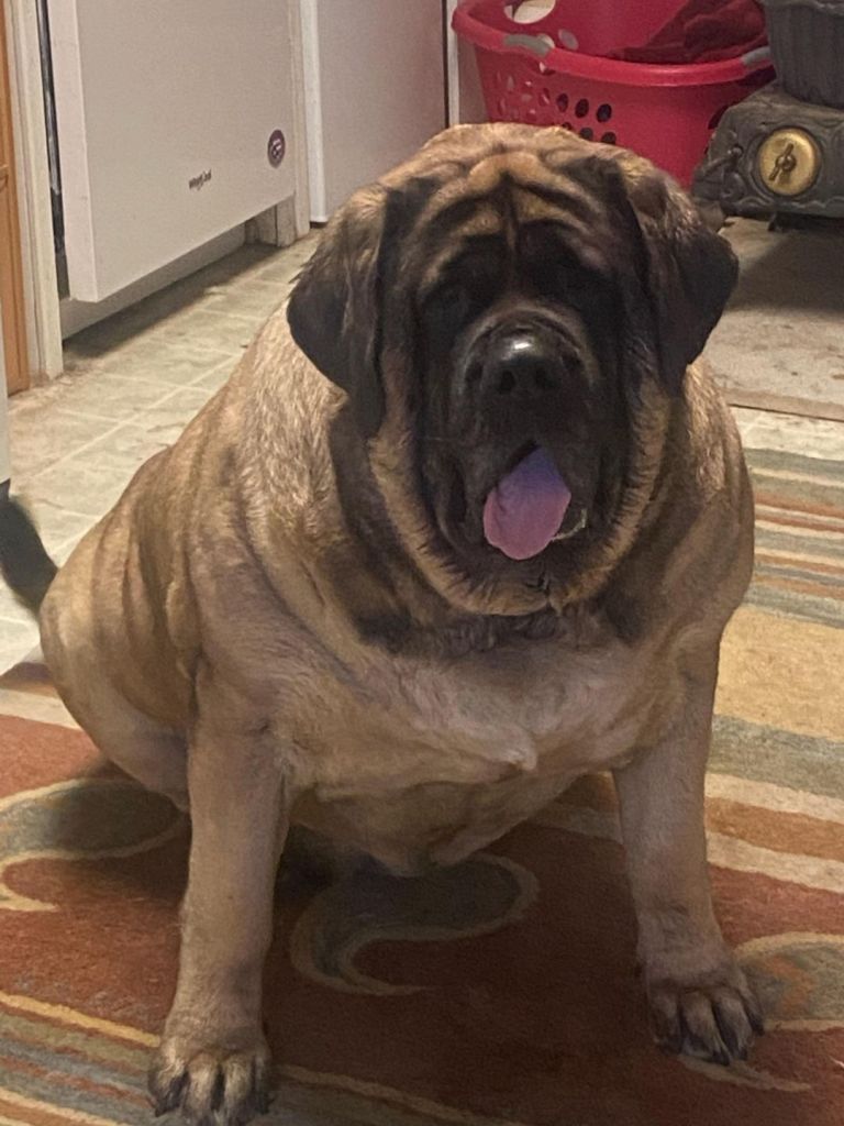 This is Mia about a week before she passed. She had thyroid cancer and it caused her to balloon in weight the last 18 months of her life. She passed weighing around 240 lbs. We still miss her presence.
