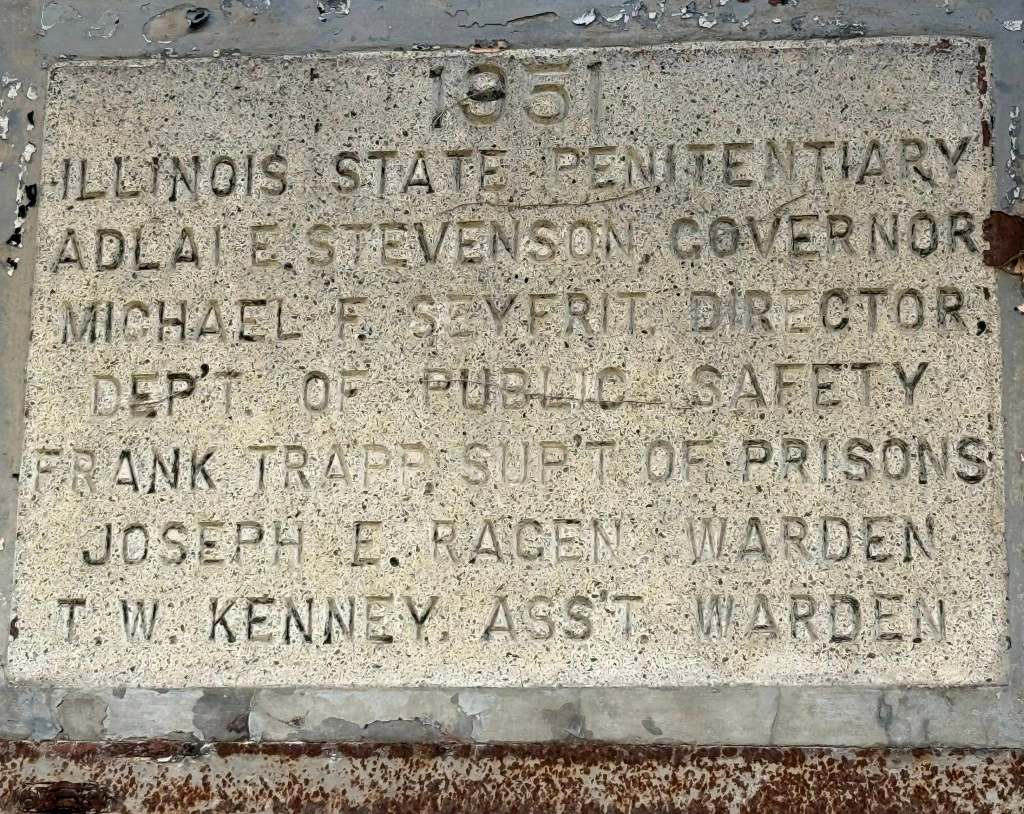 History is everywhere you go. There are inscriptions carved in limestone marking the upgrades and remodeling of the prison over the decades. The one below was over the entrance of one of the main cell blocks. I once worked under the supervision (principal) of Governor Stevenson’s grandsons. History touches us everywhere if you pay attention.